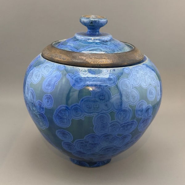 This gorgeous urn, covered in a wonderful crystalline glaze, was…
