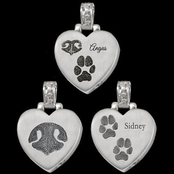 Teardrop Heart Cremation Pendant with Paw & Nose Prints