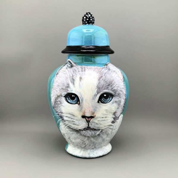 Wonderfully whimsical, these custom pet portrait ceramic urns are hand-painted…