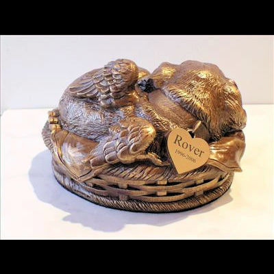 The urn is cast in cold cast bronze (polymer with bronze additive).