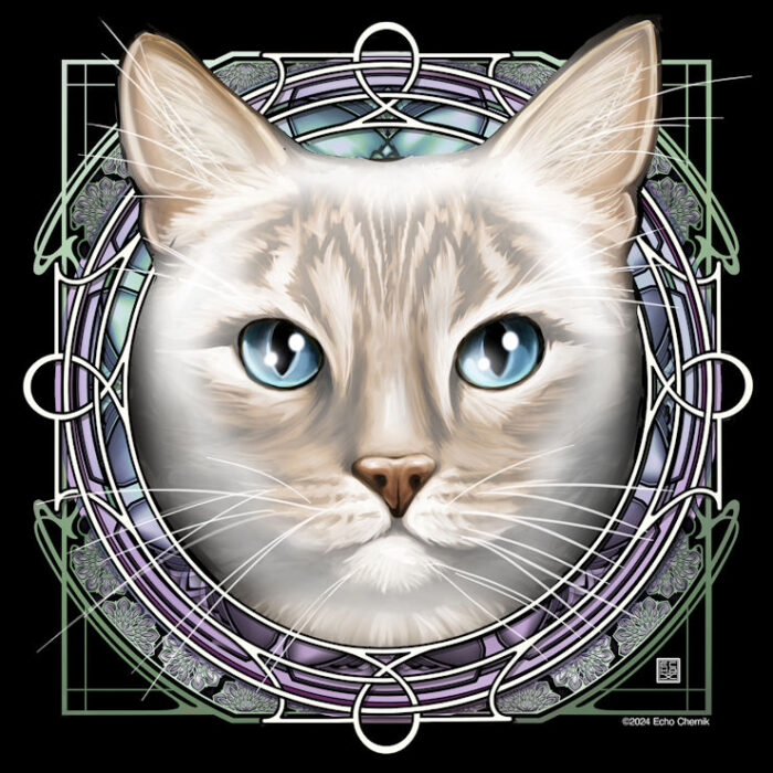 Radiant Heart is honored to offer art nouveau cat portraits by Echo Chernik — a talented world-class illustrator who lives and works in Whatcom County.