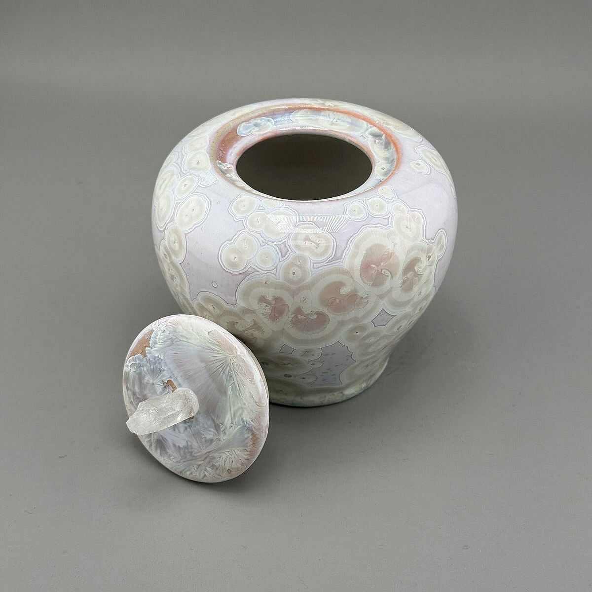 The special crystalline glaze is the result of a long and complicated firing, but the effects are well worth it. The pattern (crystals) are durable and will not fade.