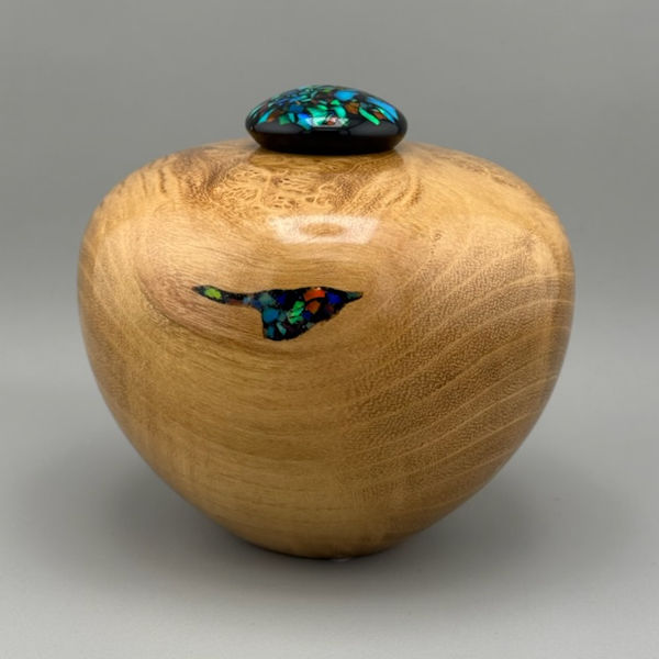 Be the first to review “Black Locust Urn with Rainbow Opal Inlay – 34 ci”