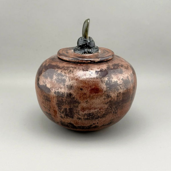 Simply gorgeous! This bronze glazed urn is topped with a lovely labradorite handle. It is a special piece of original art that you will cherish as the resting place for your pet’s cremated remains.