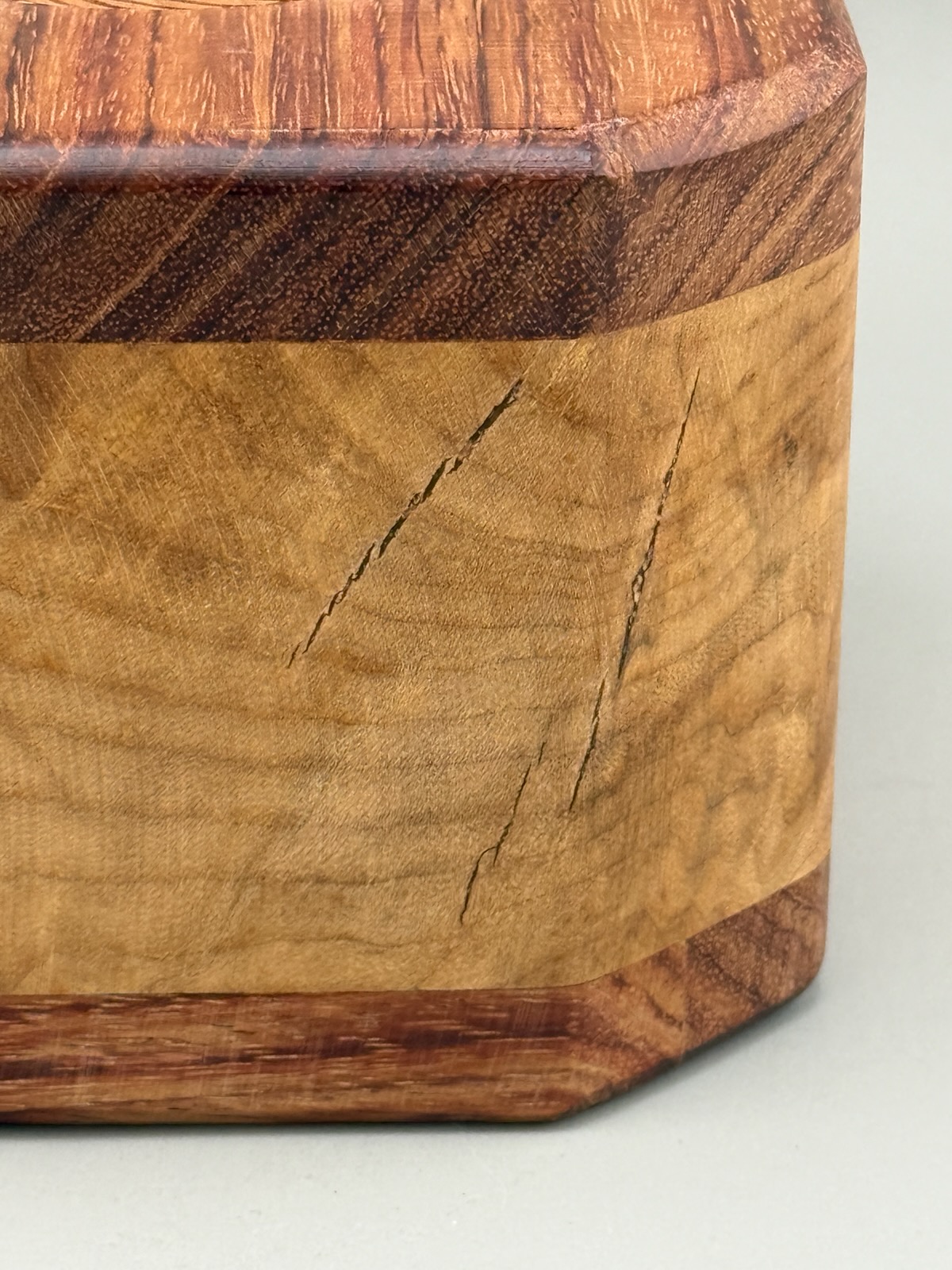 Please note:  The grain and any imperfections in the wood are natural. There are 3 small cracks on one corner of this urn.  They will never expand in size.