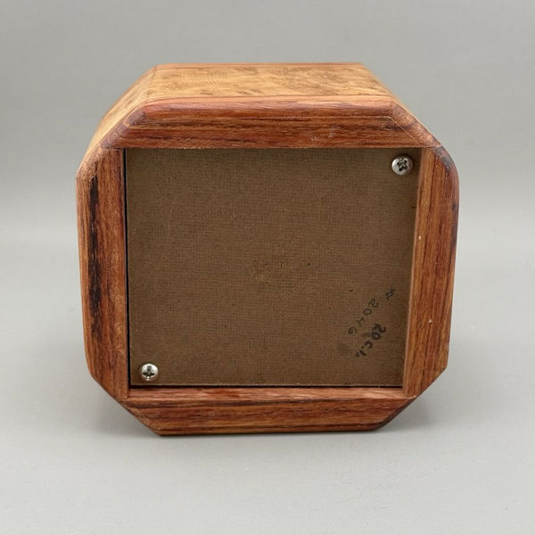 This gorgeous urn was made with care by a wood artist in Minnesota, USA. The top and bottom of this uniqiue little urn are made from bubinga wood from Africa, and the main body is redwood burl. This urn was created so that the grain of the wood is the star.  This urn is not only attractive, but also a piece of wood art.