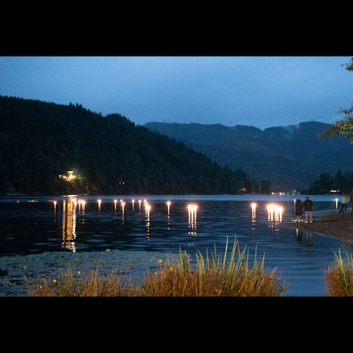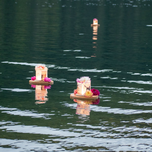 The floating lanterns are made of reusable materials and are lit by LED lights. Every single lantern will be retrieved from the water right after the event and a crew will check again the following morning. Reusable parts will be cleaned and stored for future use.