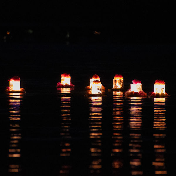 What happens to the lanterns after the ceremony? Every single lantern will be retrieved from the water right after the event. Reusable parts will be cleaned and stored for future use. The paper sleeves will be respectfully collected and cremated.