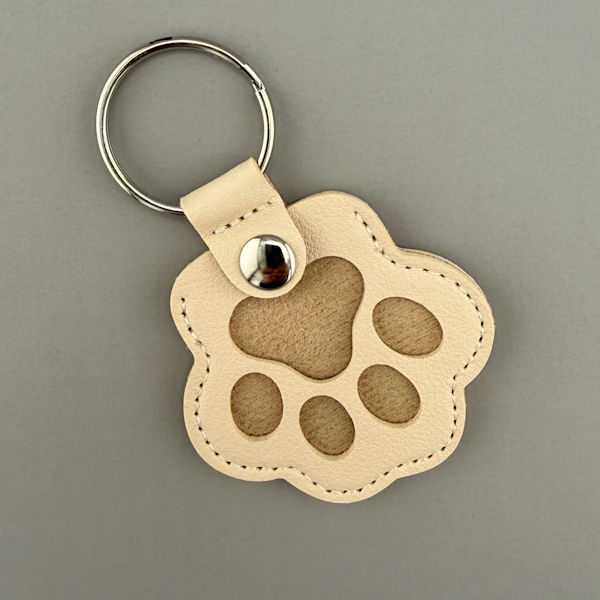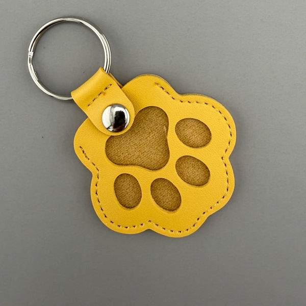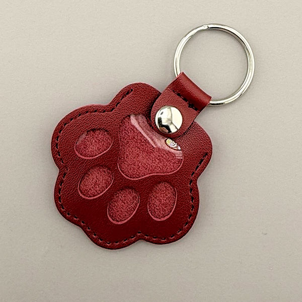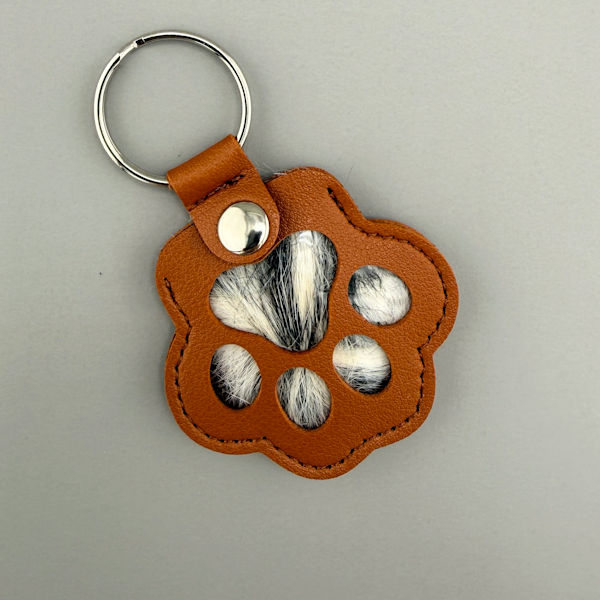 A fun and meaningful way to remember your pet.  A sample of your pet’s fur is arranged inside a cute paw-shaped leatherette keychain.