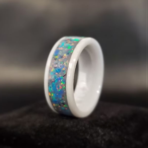 Glow-in-the-Dark Opal & Ceramic Cremation Ring