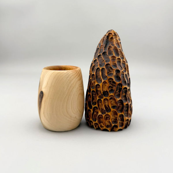 Morel #3 has extra character due to the curved tip of the cap and the dramatic grain in the base (including lots of tiny little worm holes).