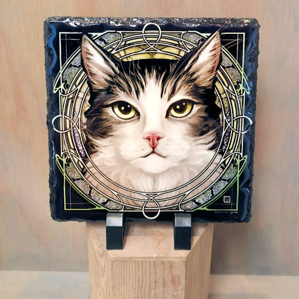 Personalized Art Nouveau Cat Portrait Package: Diptych + Slate + Ornament